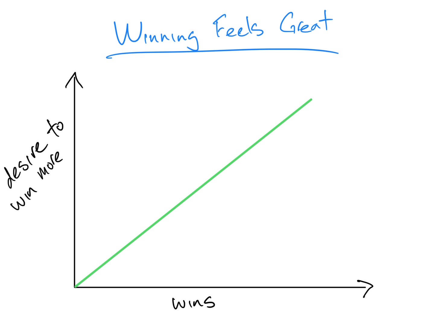 As we win more, our confidence increases as well. This fuels a positive loop of more confidence towards more winning.