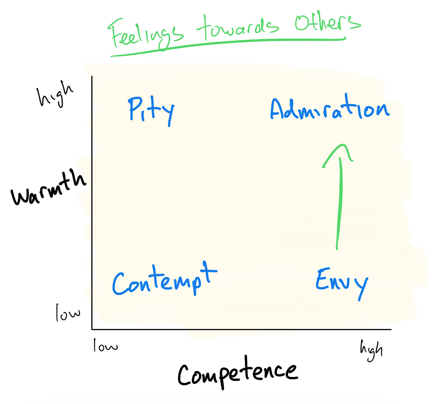 Warmth in character shifts other’s feelings from envy towards admiration.5 Warmth entails traits such as good-natured, trust worthy, friendly, sincere, understanding.