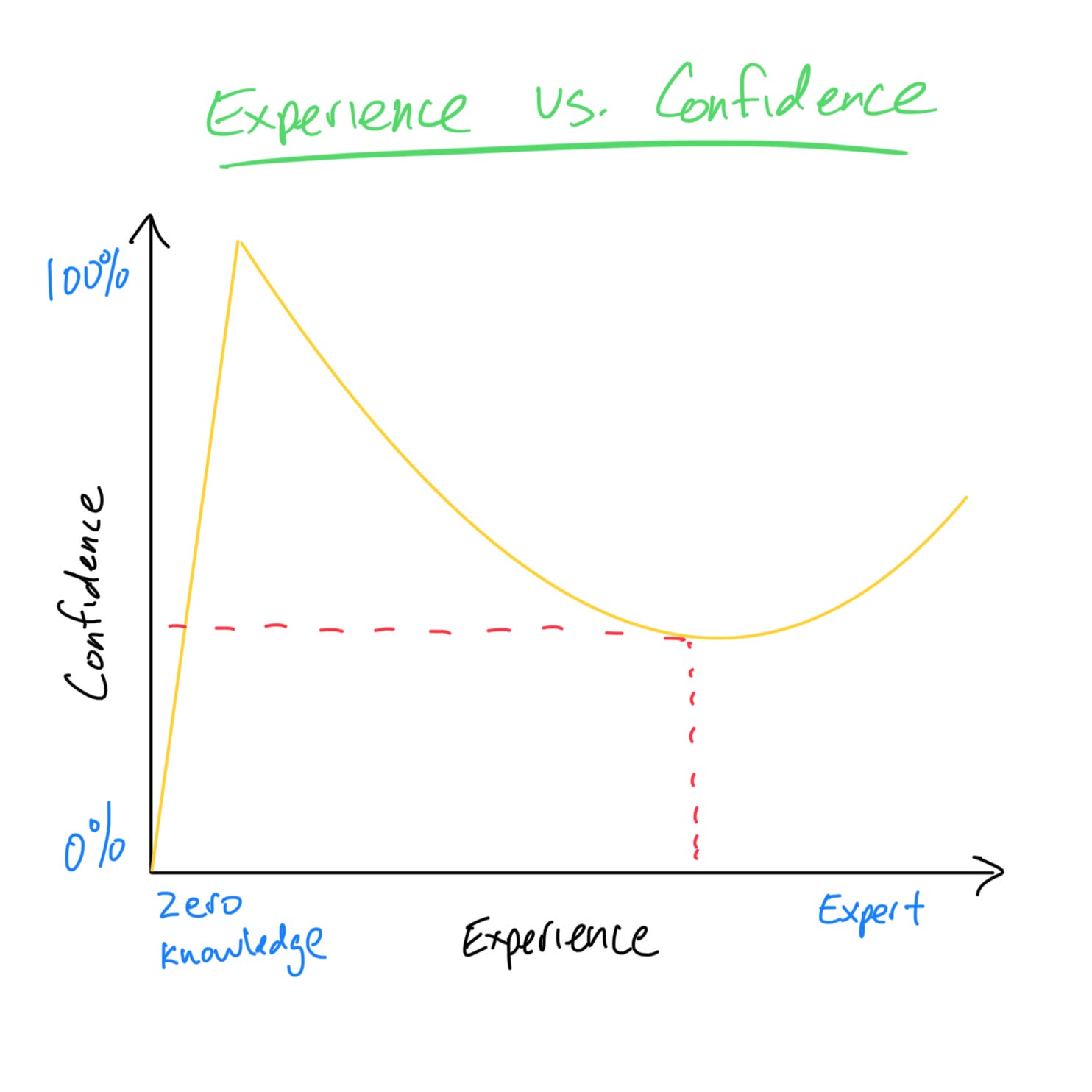 As we gain expertise, we also gain awareness of our limitations. We learn more of what high performance is. And we learn more about our shortcomings. This self-awareness creates a a paradox. Greater knowledge and expertise can result in lower self-assurance. Rather than celebrate our strengths, we identify our deficiencies. This phenomenon, the Dunning-Kruger effect, can add a double whammy of negative feelings with our success. We not only feel inferior around higher performing individuals, but we also feel lower confidence with awareness of our weaknesses.